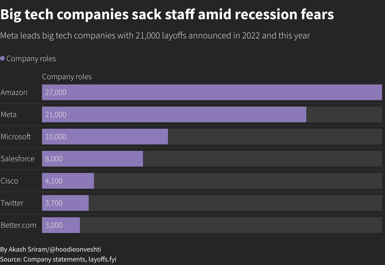 Meta's accounting makes the mechanism visible. Its full-year expense guidance runs from $162 billion to $169 billion, an increase driven almost entirely by infrastructure costs and the compensation demands of newly hired AI engineers, whose packages sit at the top of any technology pay scale. The company is simultaneously eliminating 8,000 roles concentrated in sales operations, technical program management, and enterprise support functions where its internal AI tooling has begun automating the core workflow. The decision to call the cuts an "offset" rather than a restructuring or a strategic pivot was deliberate. Meta is not changing what it makes. It is changing who does the work of running it.